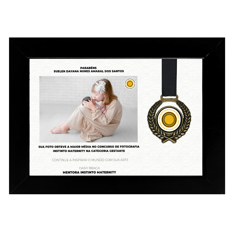 Se a sua foto obteve a maior média dentro de um concursos Instinto Maternity de Fotografia você pode solicitar este quadro e usar para seu marketing pessoal.