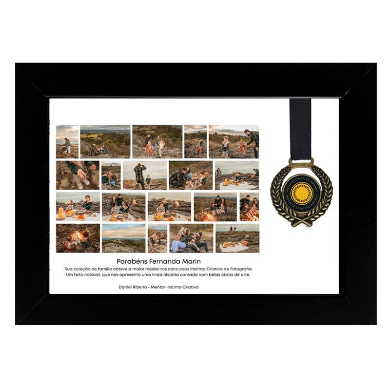 Este quadro com medalha tamanho 15×21 pode ser solicitado por todos fotógrafos que foram artista das Coleções e do Concursos de fotos Instinto Criativo em qualquer categoria.